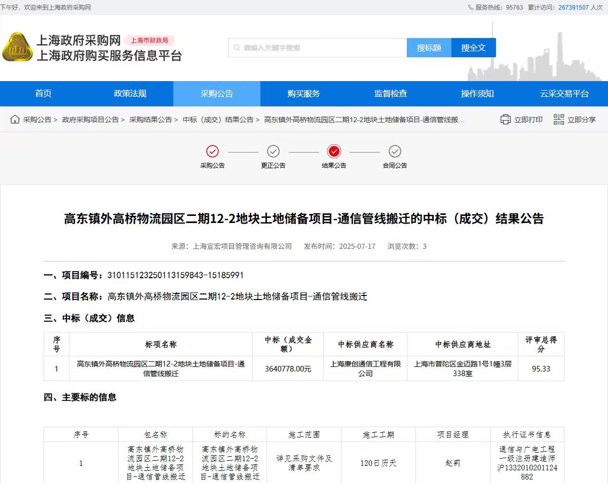 高东镇外高桥物流园区二期12-2地块土地储备项目-通信管线搬迁的中...