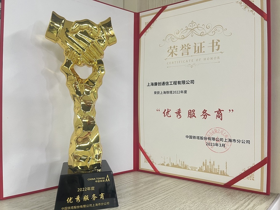 热烈祝贺我司荣获中国铁塔股份有限公司上海市分公司颁发的“上海...