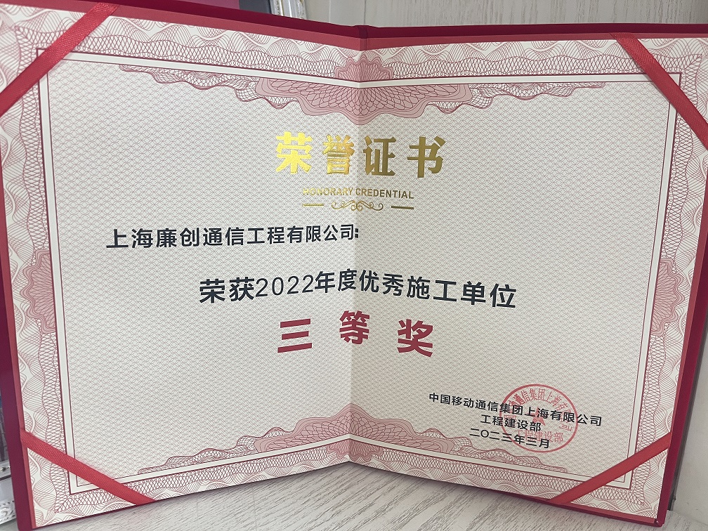 热烈祝贺我司荣获中国移动通信集团上海有限公司颁发的“2022年度...