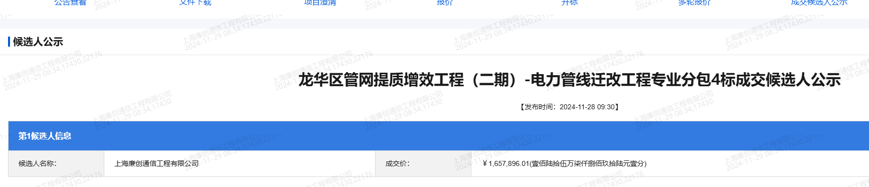 龙华区管网提质增效工程(二期)-电力管线迁改工程专业分包4标成交...