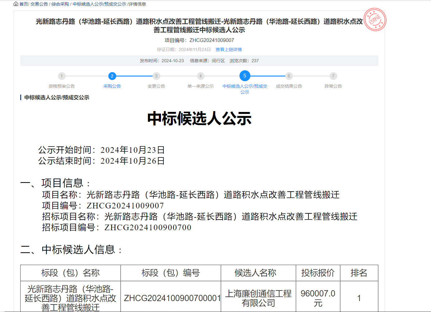 光新路志丹路(华池路-延长西路)道路积水点改善工程管线搬迁中标候...