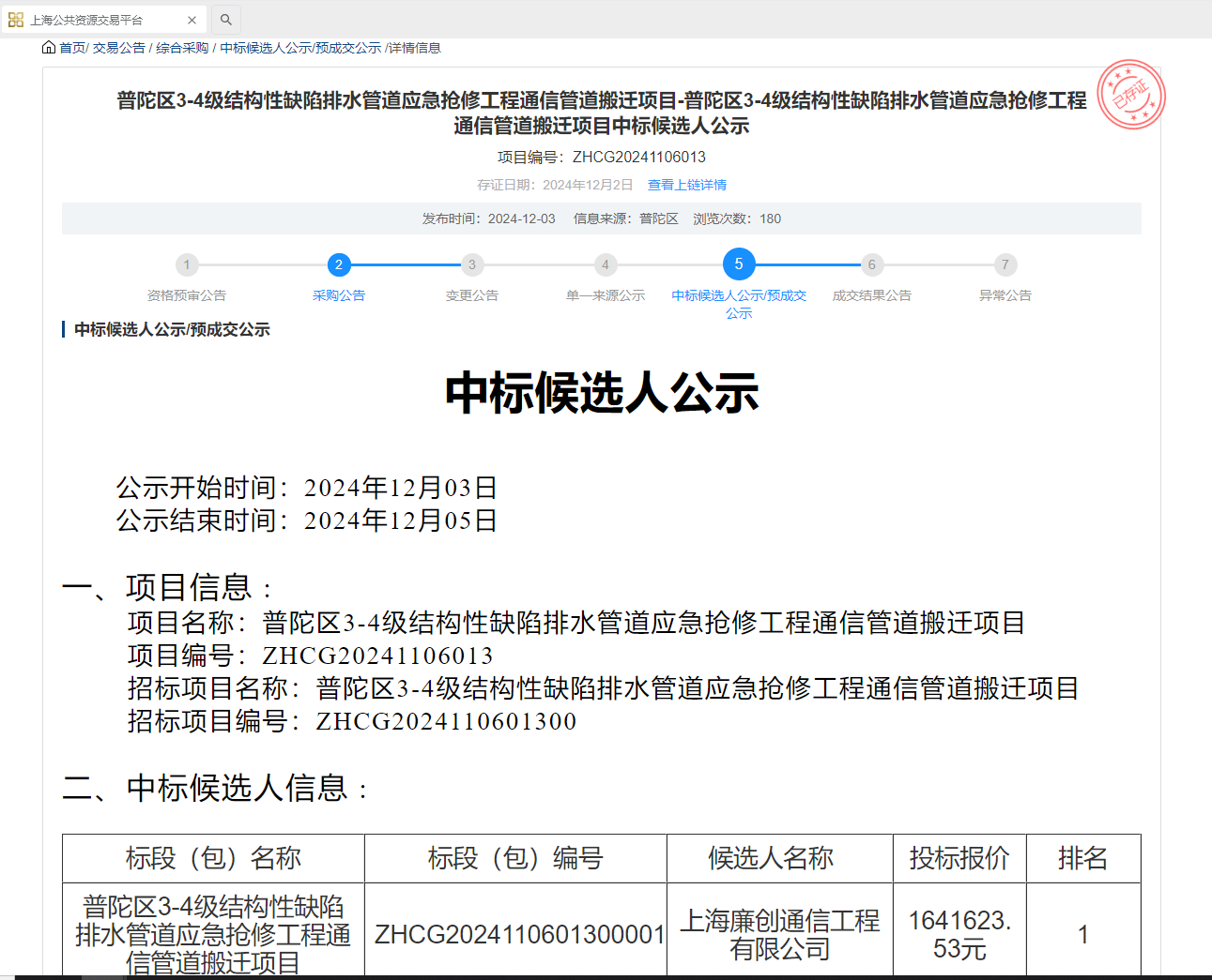 普陀区3-4级结构性缺陷排水管道应急抢修工程通信管道搬迁项目中标...