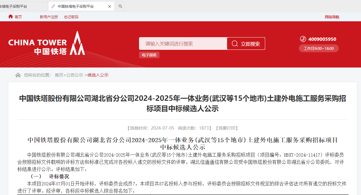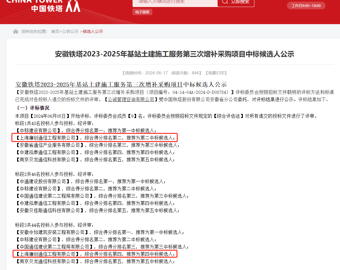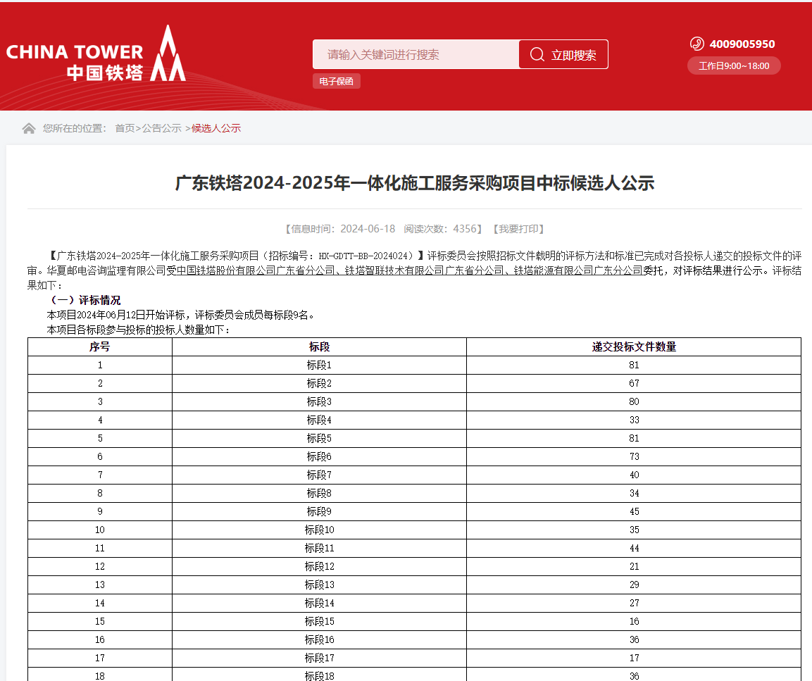 广东铁塔2024-2025年一体化施工服务采购项目中标候选人公示-标段...